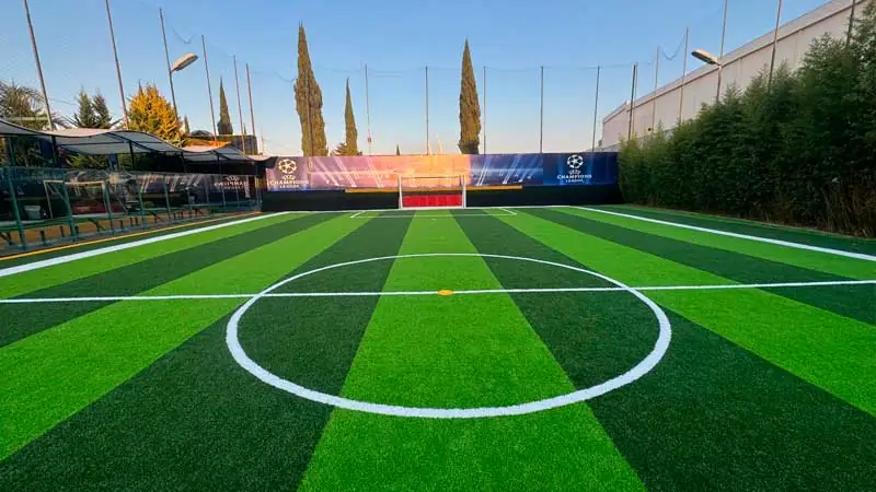 -Pasto sintético mixto, ideal para mayor confort y seguridad en la pisada.